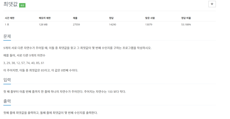 만약 배열에서 첫번째 값이 가장 큰 값이라면 배열의 인덱스는 0이지만 실제 값으로 출력할때는 1이 출력되어야 하므로 처음의 인덱스 값이 0이 아니라 1로 저장이 되어야 합니다.