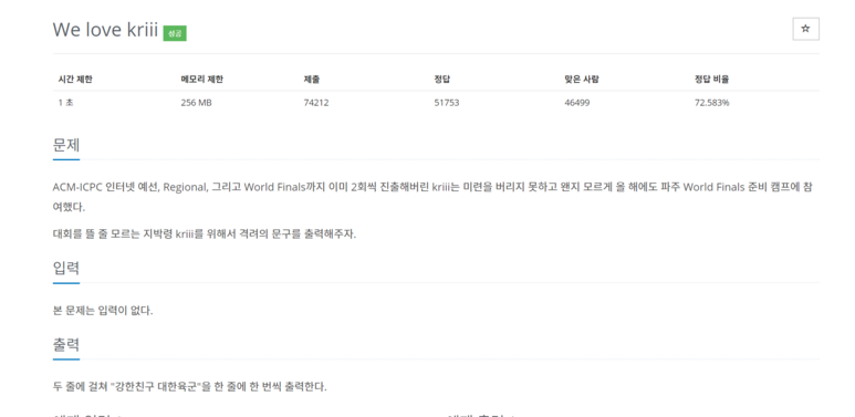 printf("강한친구 대한육군\n강한친구 대한육군");