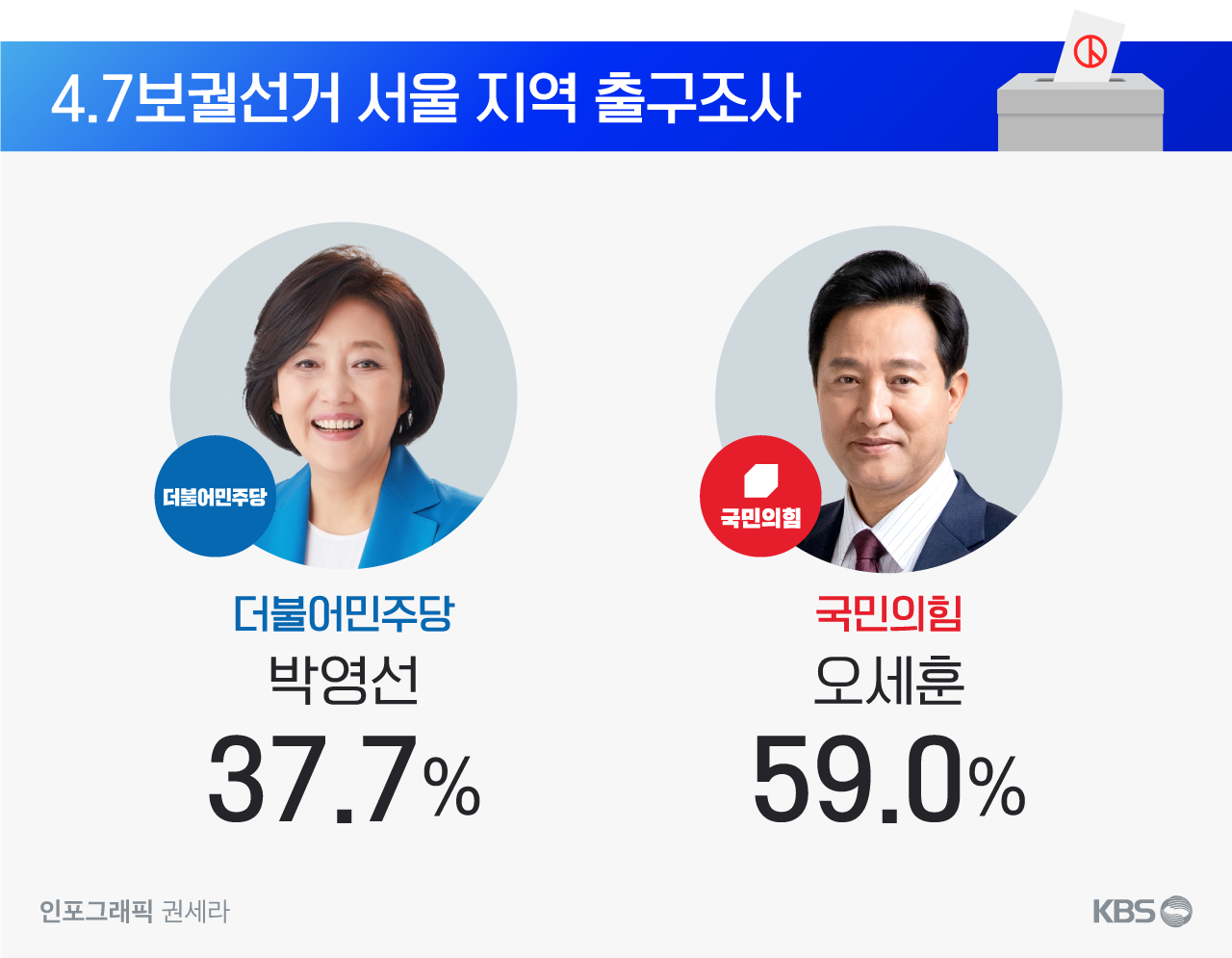 위의 출구조사 사진은 투표를 마치고 나온 성인들의 투표 후 결과들을 조사하여 나타낸 것이다.