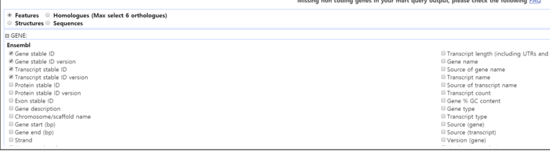 6. GENE: 부분에서 원하는 정보들을 클릭한 후,